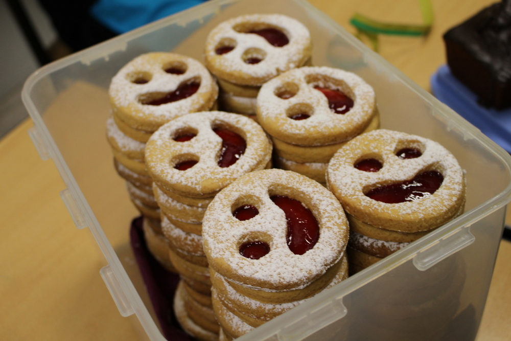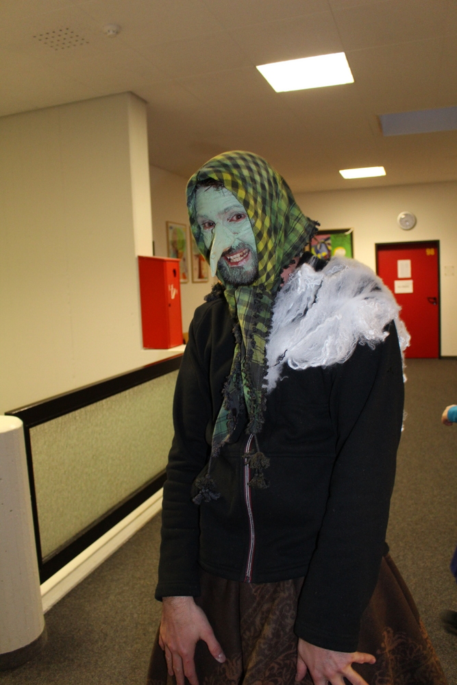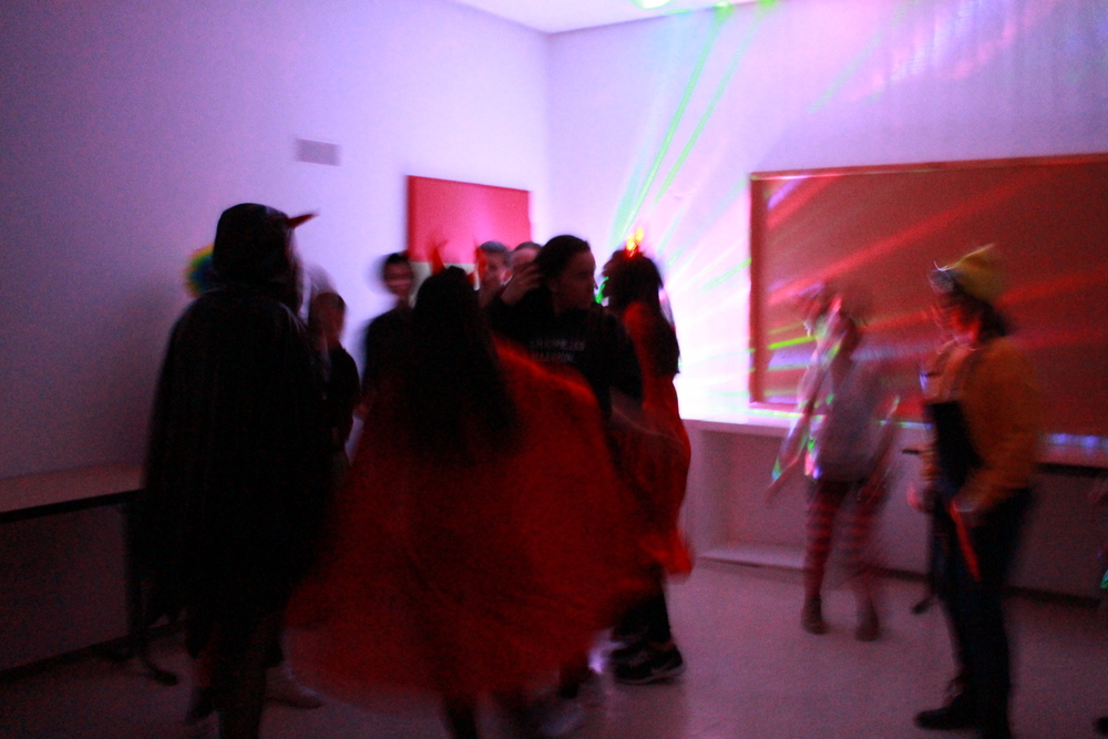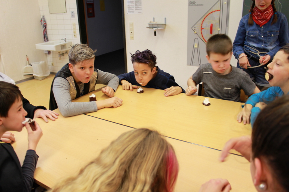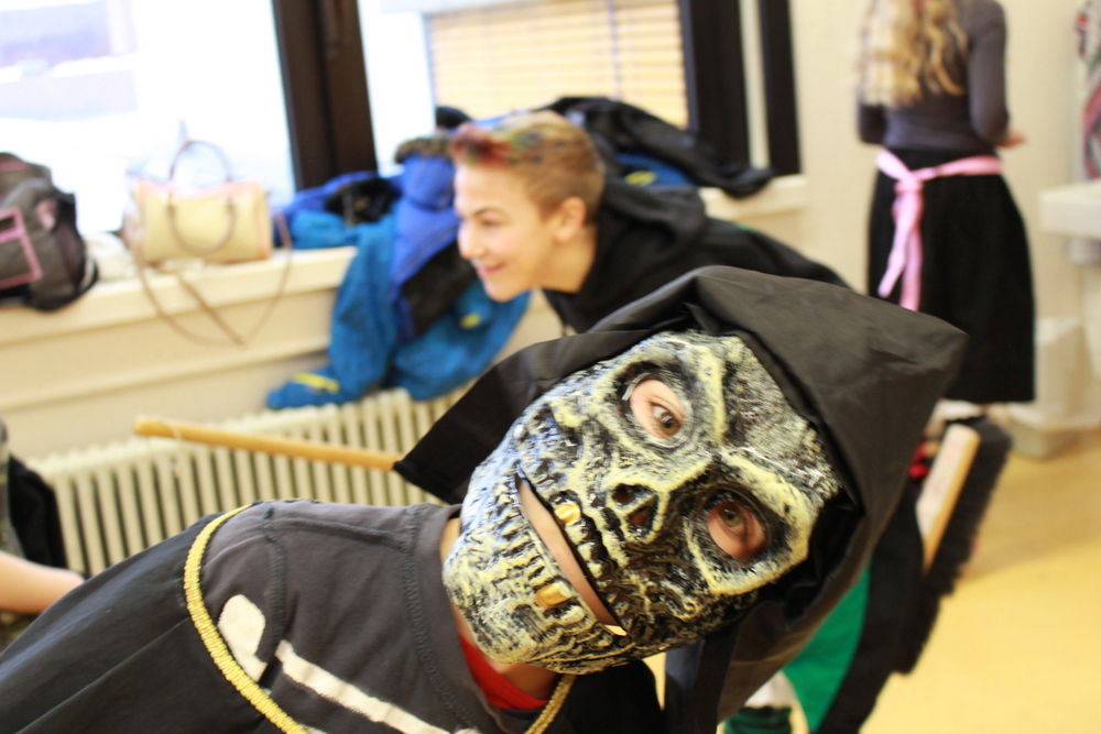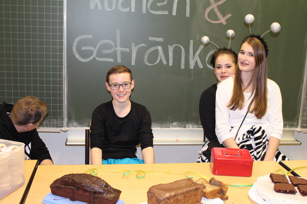Nicht nur die Anwesenden, auch das Schulgebäude war für diesen Tag verhext worden und so war an Unterricht natürlich nicht zu denken. Stattdessen luden gleich zwei Partyräume zum Tanz ein und sorgten für gute Stimmung. Wer eine Stärkung benötigte, kam auch nicht zu kurz, denn die Klasse 8 hatte vorgesorgt und verkaufte leckere selbst gebackene Kuchen, Kekse und Getränke. Gerne wurde auch der Spieleraum genutzt, wo es viel zu lachen gab. Beim Schokoladen-Wettessen kam so manch einer richtig in Fahrt. Und auch das beliebte Schokokuss-Wettessen – ohne Hände, versteht sich – durfte wie jedes Jahr nicht fehlen.