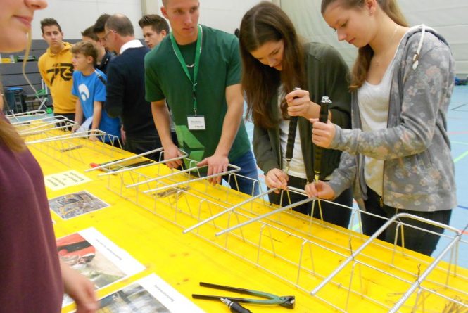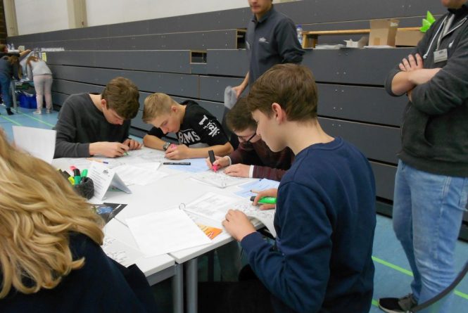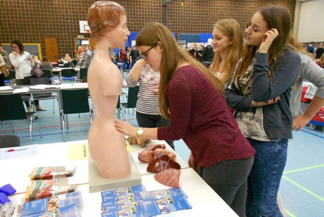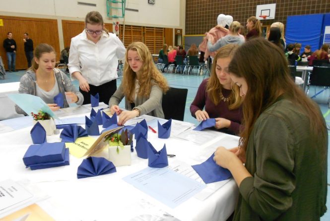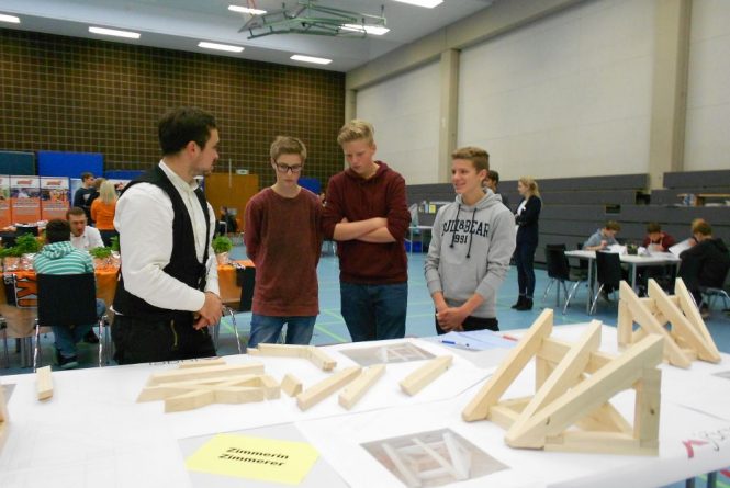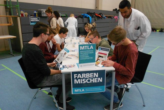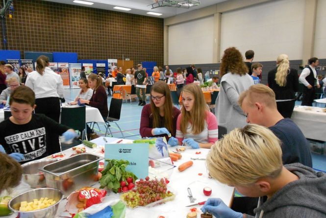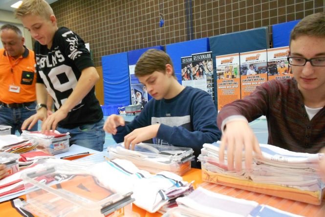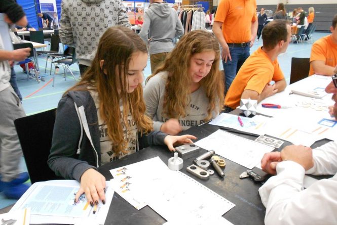 Am Freitag, dem 21. Oktober 2016, besuchten die Klassen 9 und 10 des Caspar-Mohr-Progymnasiums den Berufsparcours der IHK in Biberach. Die Schüler hatten dabei die Gelegenheit, im Mini-Praktikum in verschiedene Berufe hinein zu schnuppern, Unternehmen kennenzulernen und sich über Berufsperspektiven zu informieren. Auch wenn viele Betriebe über über Studienmöglichkeiten informierten, zum Beispiel im Rahmen eines dualen Studienganges, so lag der Fokus vorrangig auf Ausbildungsberufen, die die Gymnasiasten eher selten ergreifen. Viele Unternehmen warben aber auch für ihre Praktikumsplätze im Rahmen der Berufsorientierung (BoGy), sodass die Schülerinnen und Schüler der Klasse 9, die in diesem Jahr ihr Praktikum absolvieren werden, durchaus profitieren und erste Kontakte knüpfen konnten.