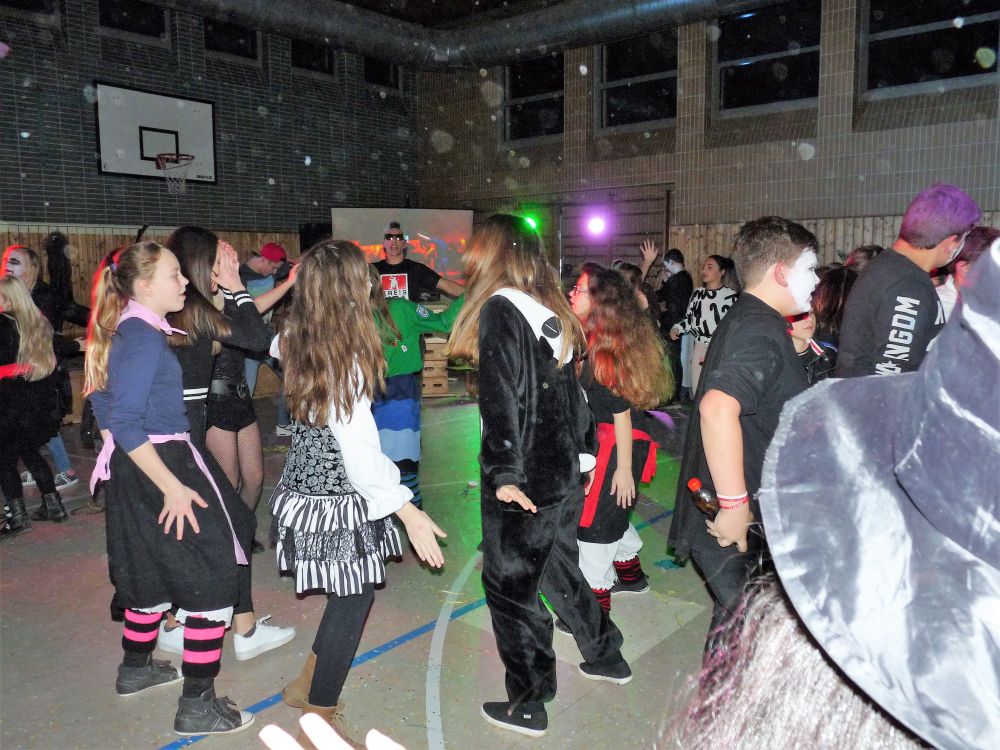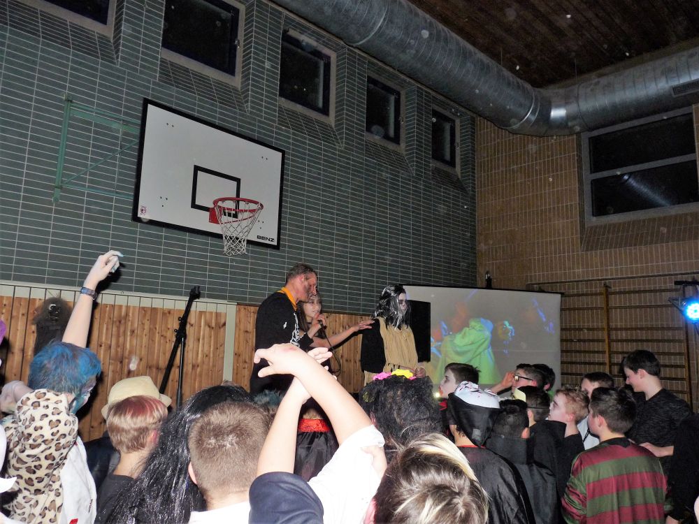 Um 18:30 Uhr startete die Party, das Motto lautete passend zu der Schussenrieder Fasnet: Gruselrunde. Circa 130 Schülerinnen und Schüler kamen verkleidet in die alte Sporthalle. Schüler der Werkrealschule sorgten für Essen und Trinken. Die Realschule kümmerte sich um Anlage und Licht, sodass richtig Partystimmung aufkommen konnte. Das Progymnasium war für die Garderobe und den DJ verantwortlich.