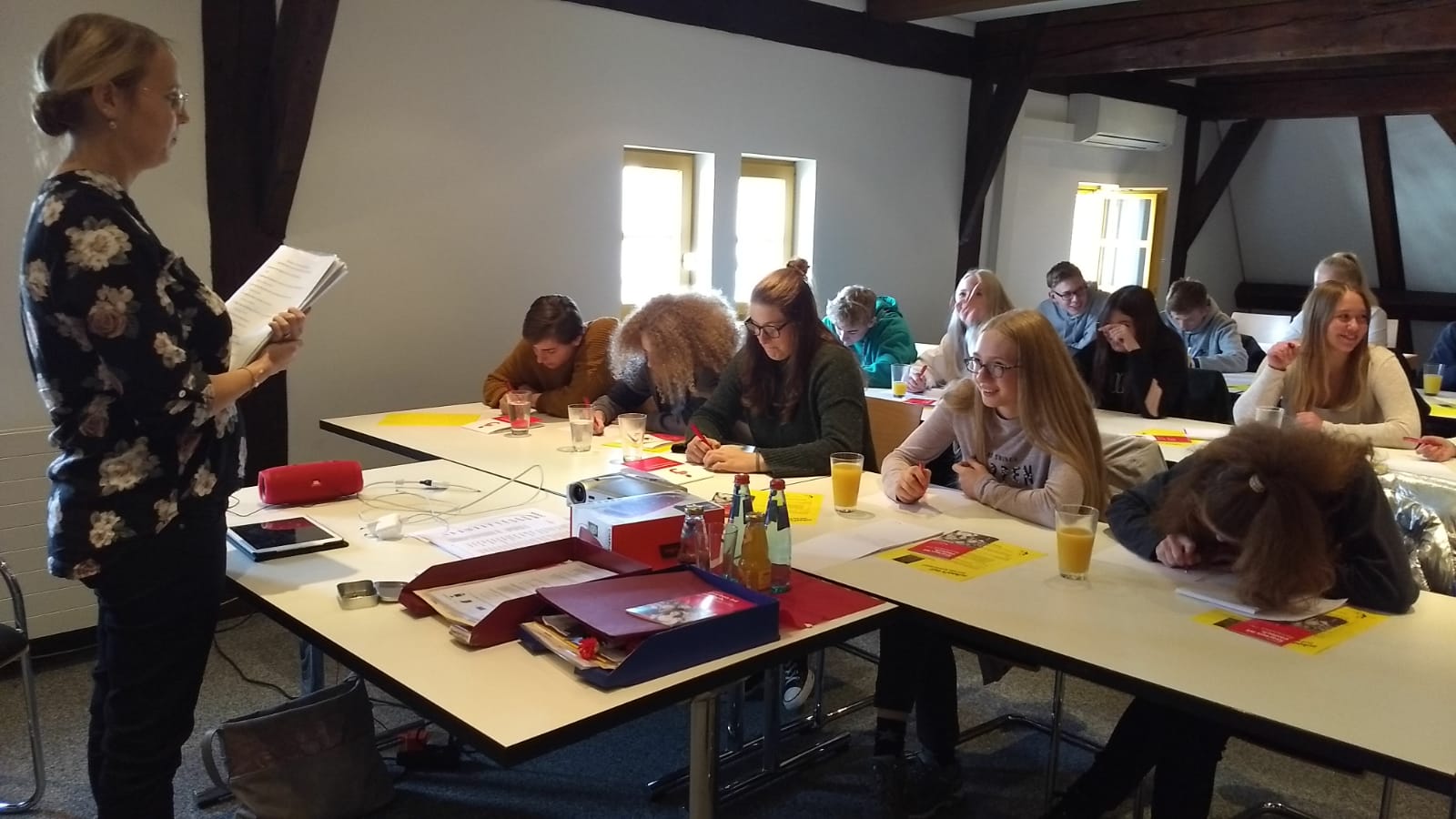 „Super, da lernt man das doch viel anschaulicher als nur im Buch oder Internet“ so das Fazit der Schülerinnen und Schüler der Klasse 9 das Caspar- Mohr-Progymnasiums nach dem Workshop „Bewerbertraining“ der Kreissparkasse in Bad Schussenried. Wie fühlt es sich zum Beispiel an, wenn man einen Einstellungstest absolvieren muss? „Die Zeit reicht nie – ruhig und konzentriert bleiben!“ So rät die Expertin Simone Angele, die bei der Kreissparkasse Biberach für den Bereich Ausbildung verantwortlich ist. Von der Suche nach einem geeigneten Unternehmen für eine Praktikums- oder Ausbildungsstelle über die Form der Bewerbung bis zum Vorstellungsgespräch reichte der Bogen, Simone Angele spannte und mit vielen Beispielen aus ihrer täglichen Berufserfahrung füllte. Wie wichtig es zum Beispiel ist, sich vor einem Bewerbergespräch bereits gründlich Gedanken zu machen, zeigte sich deutlich im Rollenspiel: Die Frage nach persönlichen Stärken und Schwächen haben sich die Schüler eigentlich bereits schon im Verlauf der Studien- und Berufsorientierung in Klasse 9 gestellt, dennoch ist es etwas ganz anderes in einer Bewerbungssituation diese Stärken nachvollziehbar zu belegen und Schwächen nicht zu Fallstricken werden zu lassen. Auch der Blick auf die eigene schulische Leistung wurde geschärft: „Für ein Duales Studium solltet ihr einen Eins-Komma-Schnitt im Abitur anpeilen, vielleicht noch knapp darunter, legt euch ins Zeug“ – da schluckte doch der eine oder andere. So kam dann das Fazit der Fachfrau zum Abschluss als positive Rückmeldung: „Eine interessierte, aufmerksame und engagierte Klasse – wir würden uns freuen, euch bei uns zu sehen!