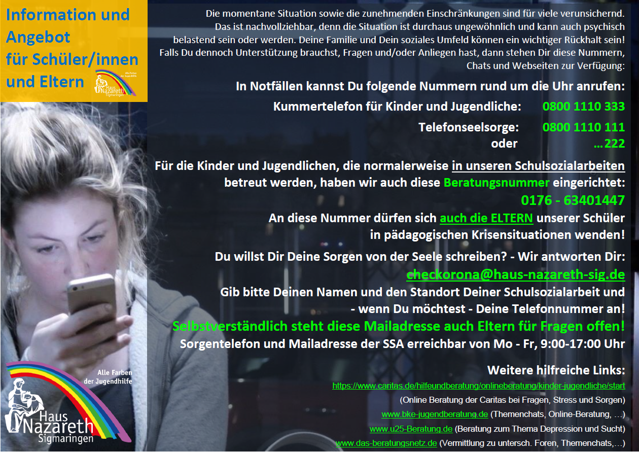 Informationen zu Abläufen während der Corona-Pandemie in den Schulsozialarbeiten  des Erzb. Kinderheims Haus Nazareth