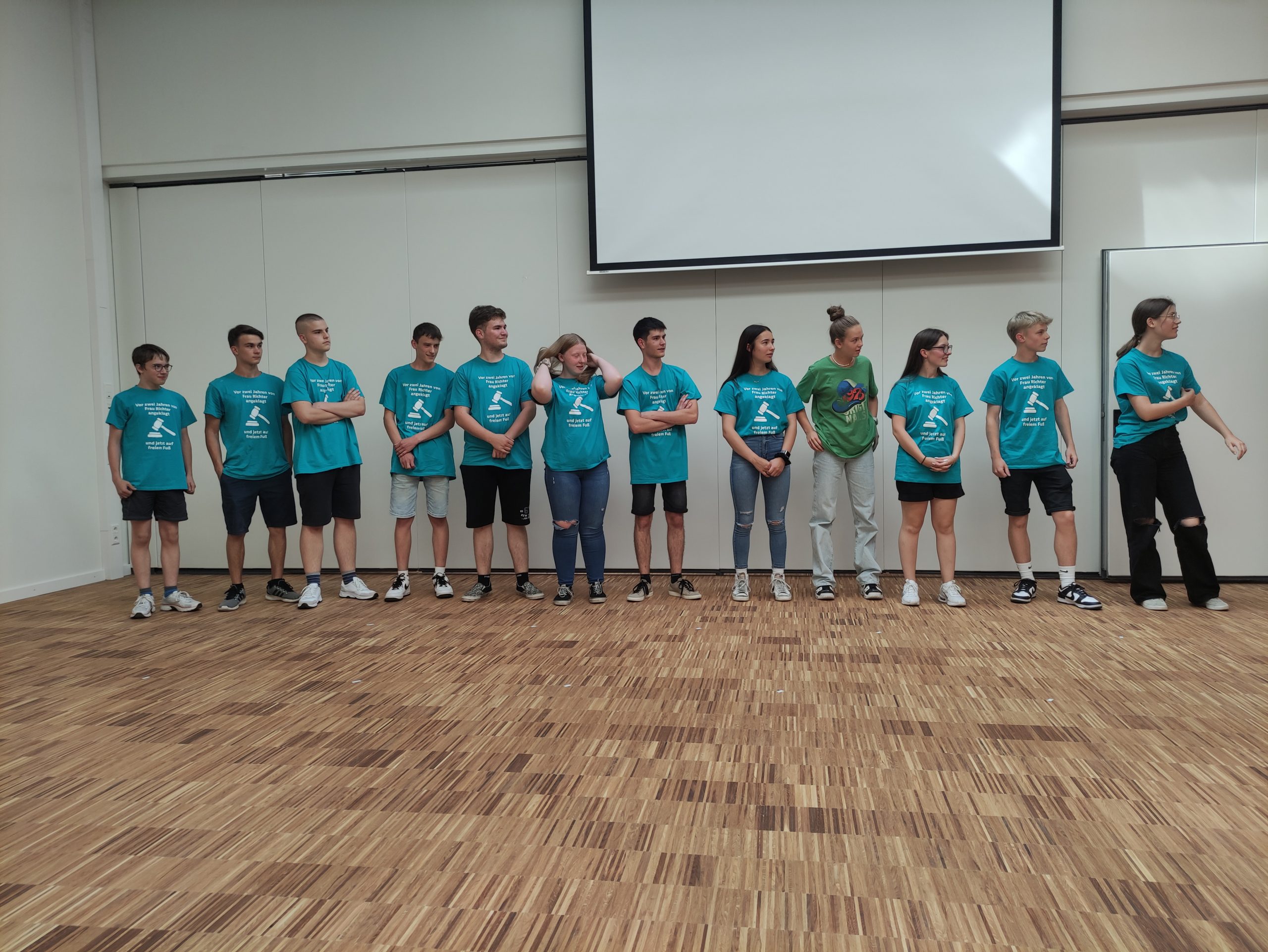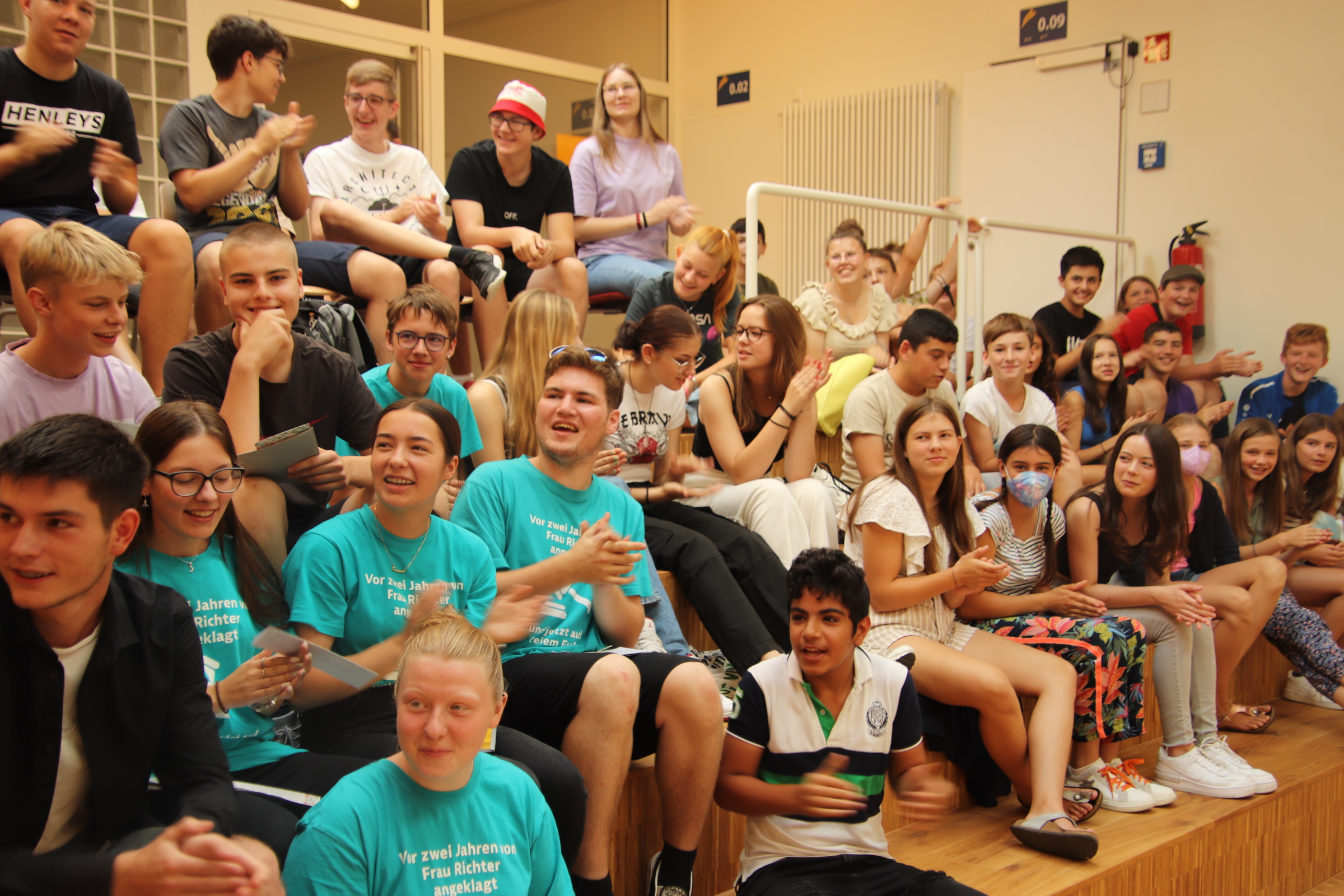 Am letzten Schultag entspannt beim Abschied in der Aula.