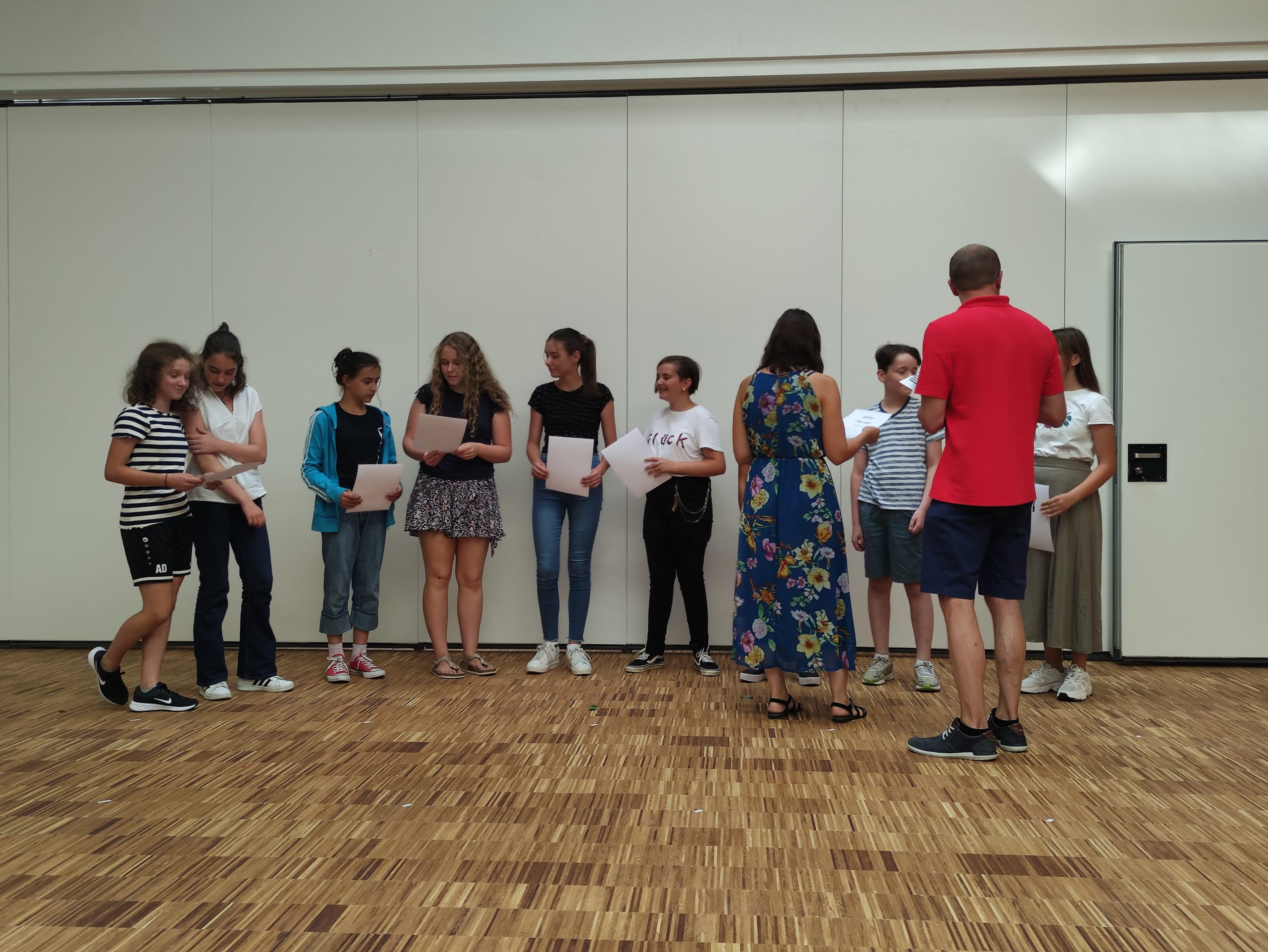 Glückliche Sechstklässler erhalten ihre Preisurkunden.